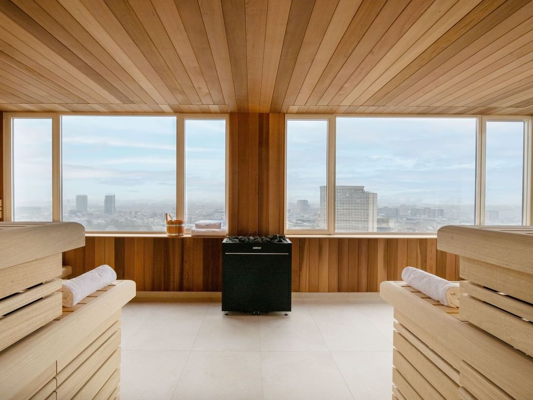 Pour les amateurs de fitness : Notre salle de sport située au 23e étage offre une expérience unique avec une vue panoramique sur la ville. Équipée d’appareils Technogym modernes pour l’entraînement cardio et de musculation, c’est l’endroit idéal pour dynamiser votre corps et votre esprit avant de vous détendre au spa.