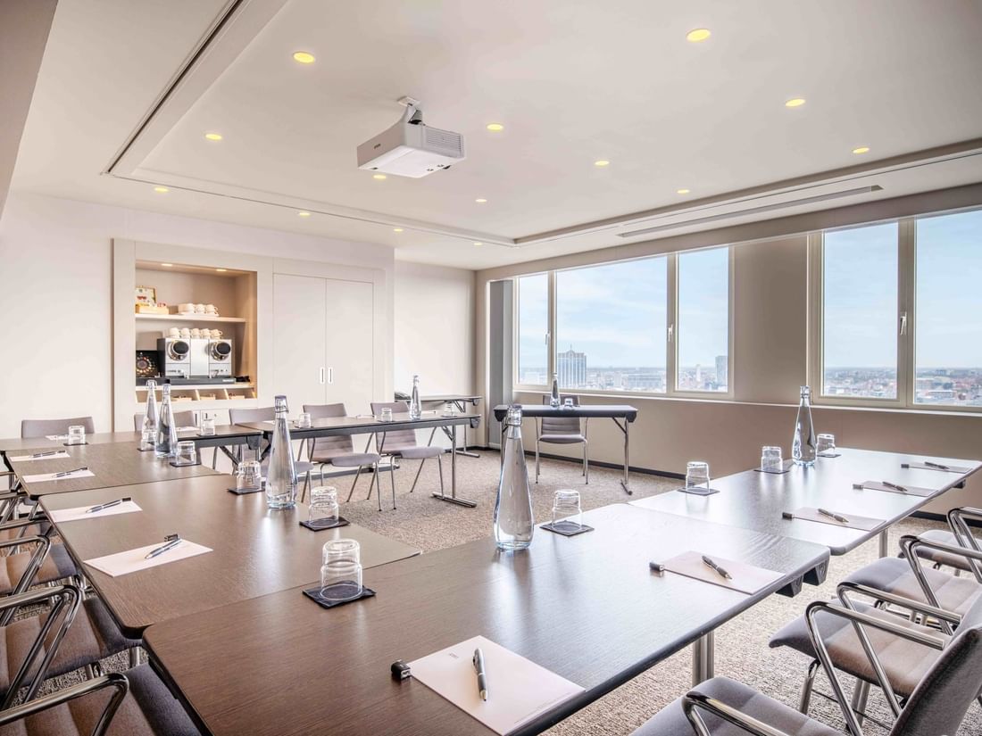 Suscitez des pensées visionnaires dans cette salle de réunion moderne avec des vues imprenables sur Bruxelles. Pouvant accueillir jusqu'à 36 personnes, cet espace flexible est inondé de lumière naturelle et offre un cadre élégant pour votre événement.