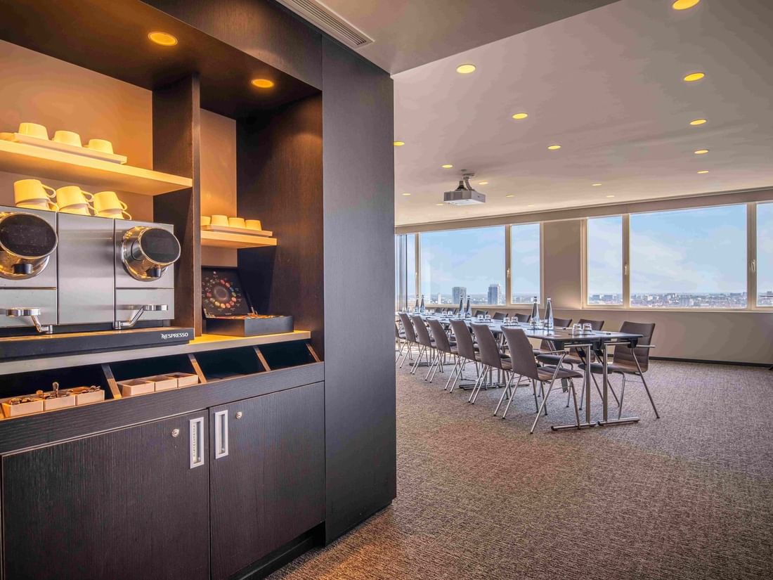 Respirez l'exclusivité de cette salle de réunion située au coin du 26e étage. Les vues panoramiques de Bruxelles offrent une touche particulière à cet espace événementiel pouvant accueillir jusqu'à 24 personnes. Baigné de lumière naturelle, le luxe moderne de cette salle sera un gage d'originalité pour votre événement.